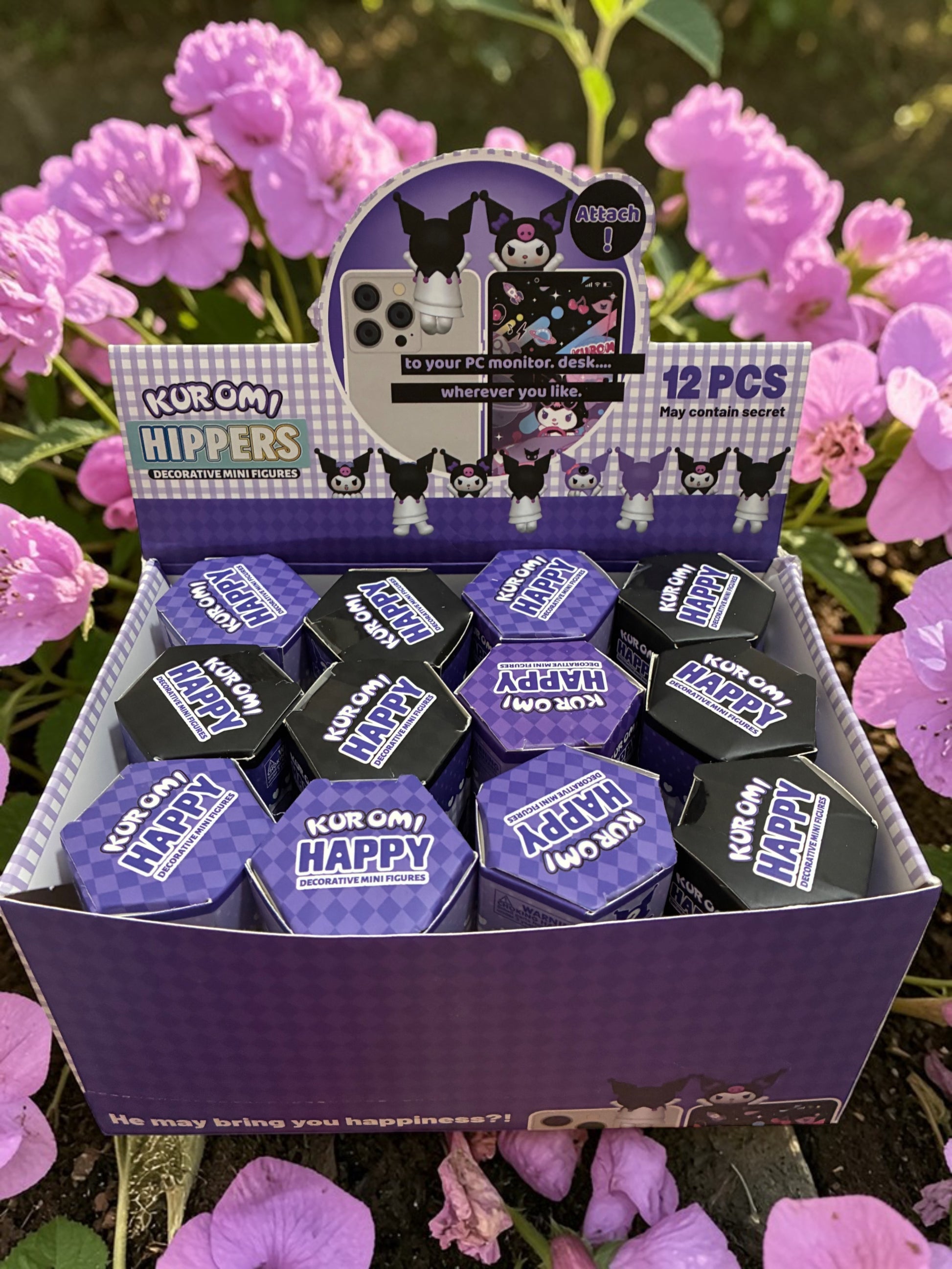 These Kuromi Hippers Mini Figures are adorable blind box collectibles designed to βhangβ onto your phone, PC monitor, shelf, or desk.